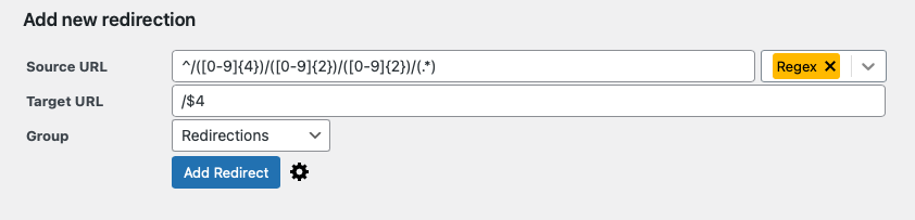 WordPress permalink change (/%year%/%month%/%day%/ → /%postname%/)^/([0-9]{4})/([0-9]{2})/([0-9]{2})/(.*)/$4② Move an entire directory structure to a different location