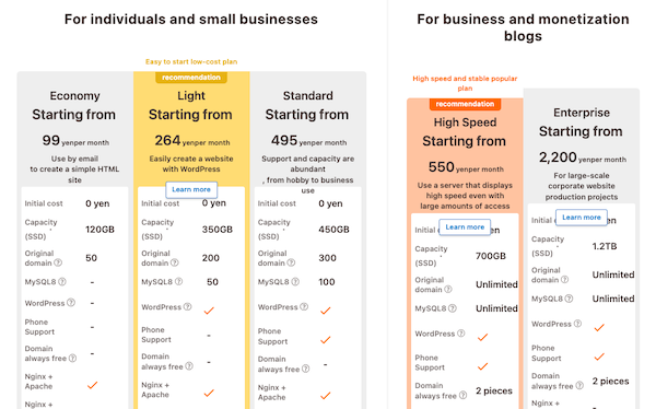 ② Select a server plan and register a new account. Since WordPress is required, select the Light plan or higher. If you have no special needs, we recommend the Light plan.