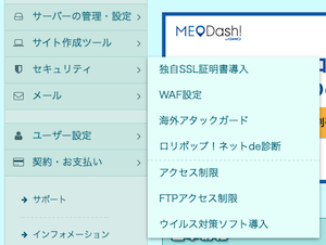 Note: The Lollipop! Rental Server administrator page (Control Panel) is available only in Japanese, and there is no function to switch to English display.
