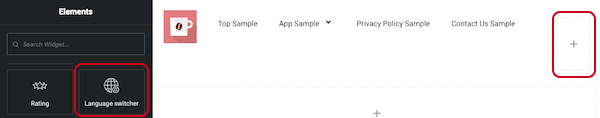 ⑦ Add a container to the right of the menu bar and place the “Language Switcher” there.