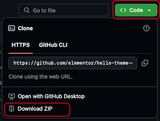 ⑥Hello Elementor の子テーマは、GitHubからダウンロードできます。