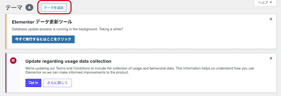③「テーマを追加」をクリックします。