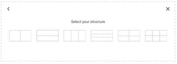 ① (1)の「+」をクリックすると、以下のような画面になります。どちらもページ内に分割した箱(枠)を設置します。