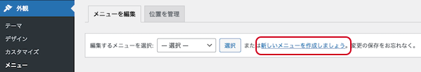 外観 > メニュー を開き、「新しいメニューを作成しましょう」をクリックします。