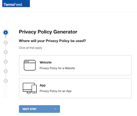 ①TermsFeed(https://app.termsfeed.com)」にアクセスし、「Privacy Policy Generator」を選択します。