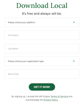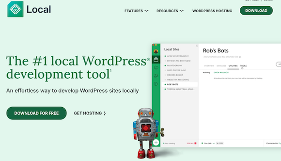 ①「Local」の公式サイト(https://localwp.com)にアクセスし、「DOWNLOAD FOR FREE」をクリックします。