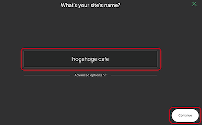 ⑥「your site’s name」を入れて「Continue」で進めます。