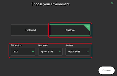 ⑦「Custom」を選択して、公開サーバーの設定に合わせて進めます。